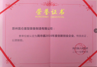 昆侖重工榮膺昆山市周市鎮(zhèn)“2016年年度創(chuàng)新創(chuàng)業(yè)企業(yè)”稱號